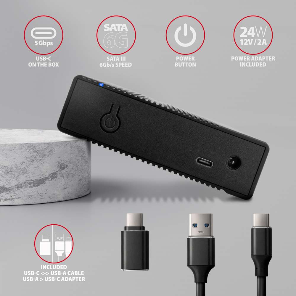AXAGON EE35-GTR, USB-C 5Gbps - SATA 6G 3.5" RIBBED box, černý