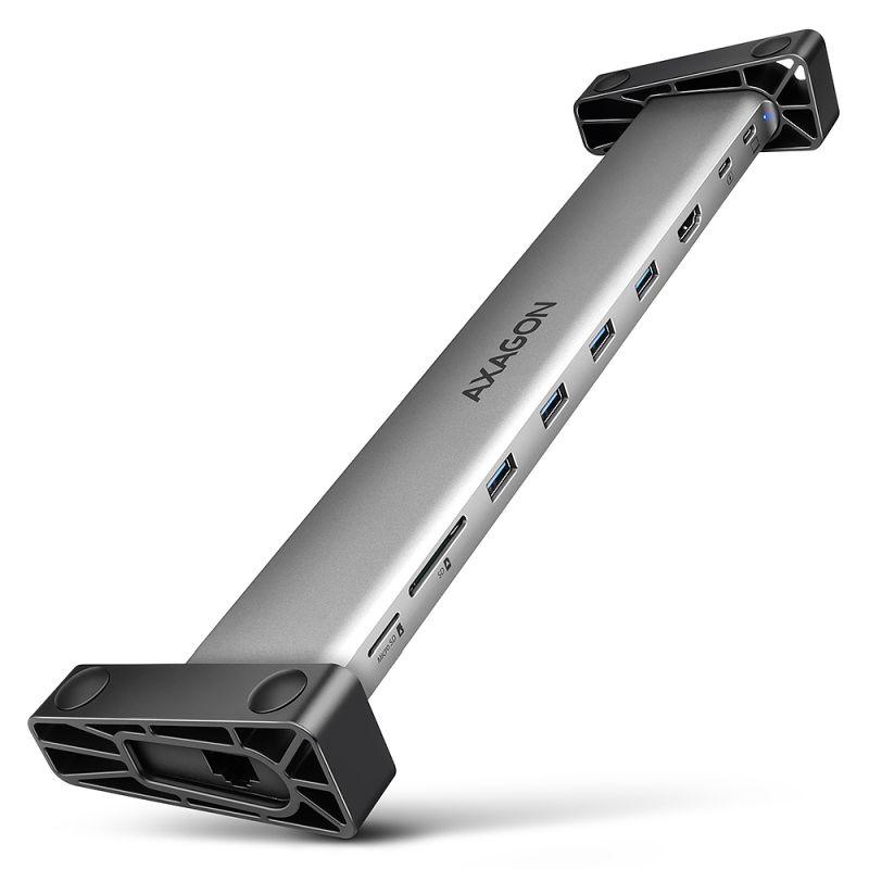 Multiportový USB-C 5Gbps AXAGON HMC-10HLS LONGER hub 9in1 rozšíří Váš notebook, počítač nebo telefon o devět portů. Přes oboustranný USB-C konektor snadno a rychle připojíte k počítači monitor, čtyři USB zařízení, Gigabitovou ethernet síť a čtečku SD kar