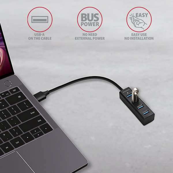 Miniaturní kovový USB 3.2 Gen 1 (USB 3.0) hub AXAGON HUE-M1A snadno a rychle připojí k notebooku nebo počítači až čtyři USB zařízení současně. Kovové tělo hubu je vyrobeno z hliníku a zajišťuje tak dokonalou mechanickou ochranu pro časté přenášení. Elega