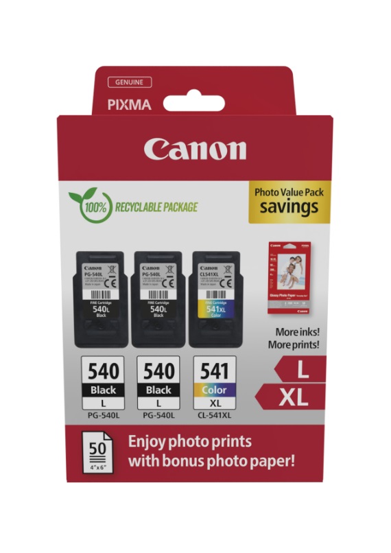 4x6 Phot Paper(GP-501 50sheets) + L Black x2 & XL Colour Cartridges PG-540Lx2/CL-541XL PVP pro MG2150 MG2250 MG3150 MG3250 MG3550 MG4150 MG4250 a MX375 MX395 MX435 MX455 MX475 MX515 MX555 MX525 MX535