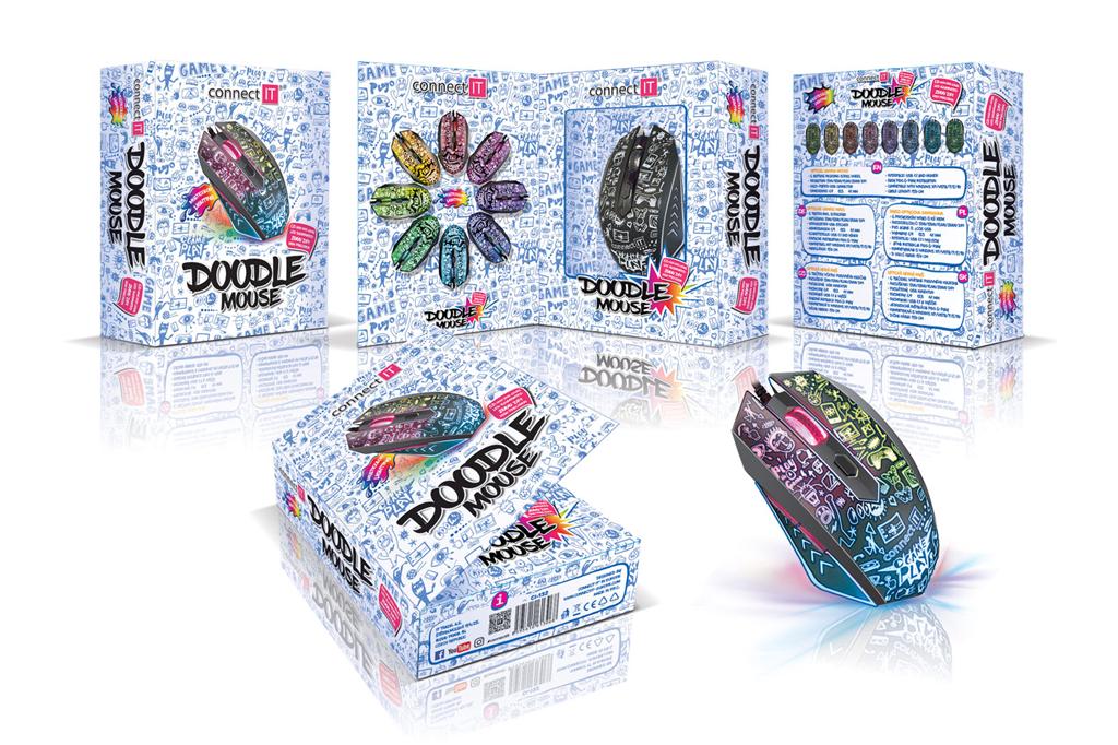 CONNECT IT DOODLE herní myš, LED podsvícení, 2000DPI, 6 tlačítek, USB