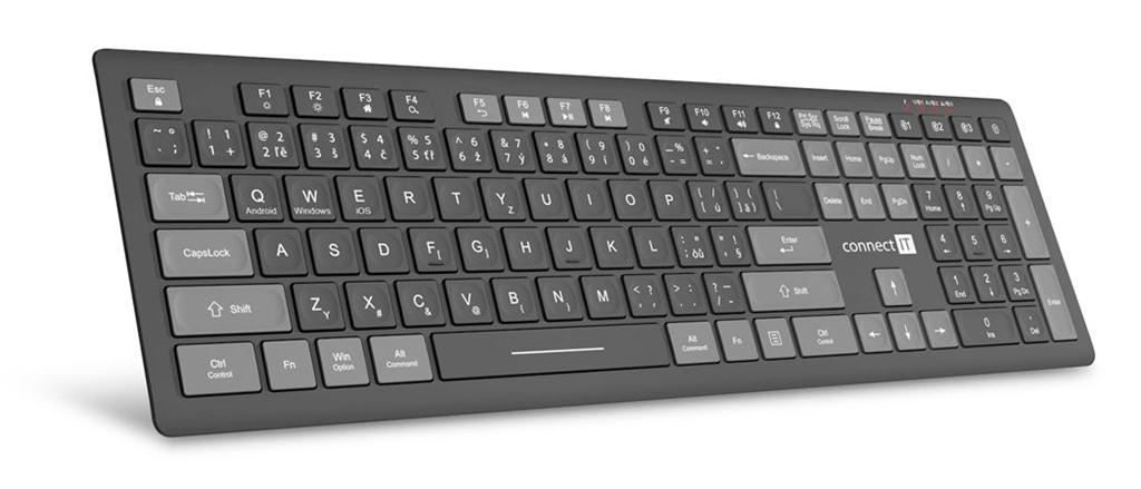 CONNECT IT MultiDevice bezdrátová klávesnice,tichá,nízk. profil, Quatro SmartSwitch 4 zařízení, CZ + SK layout, ŠEDÁ