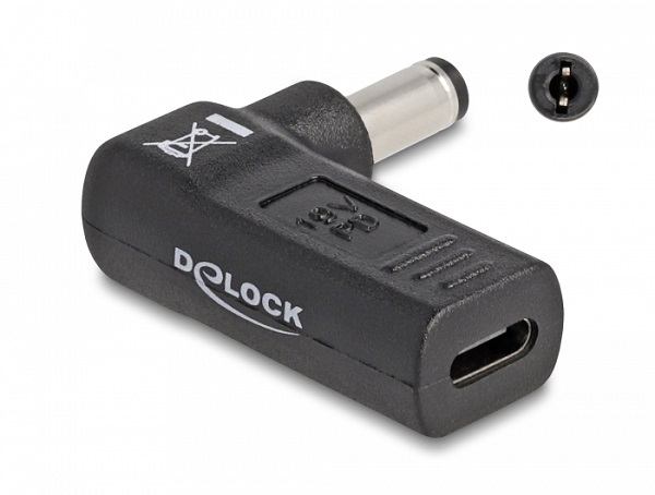 Delock Adaptér na kabel na nabíjení laptopu, ze zásuvky USB Type-C™ na zástrčku 5,5 x 2,1 mm, úhlový 90°