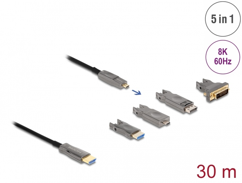 Delock Aktivní optický HDMI kabel 5 v 1, 8K, 60 Hz, 30 m
