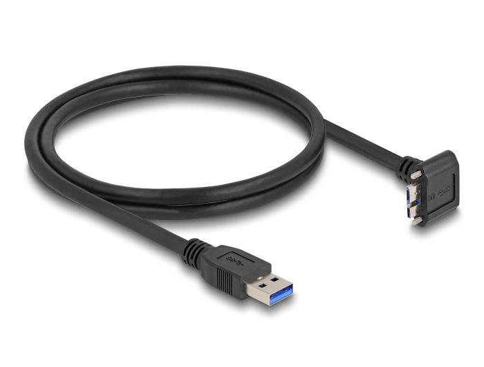 Delock Kabel s rozhraním USB 5 Gbps, se zástrčkou USB Typ-A, přímá, na zástrčku USB Micro-B, se šrouby, pravoúhlá nahor