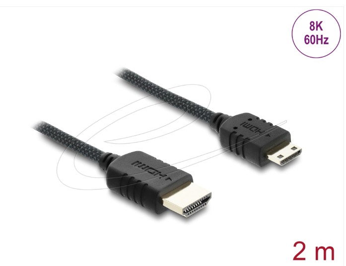 Delock Koaxiální kabel High Speed HDMI HDMI samec na Mini HDMI samec 8K 60 Hz s pleteným opláštěním 2 m