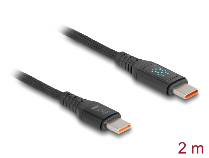 Delock Rychlonabíjecí kabel USB 2.0 ze zástrčkového rozhraní USB Type-C™ na zástrčkové rozhraní PD 3.1, 140 W, s indika