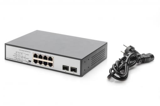 DIGITUS 8 Port Gigabit Switch 8xRJ45 (6xPoE)+ 2G SFP 180W Support 802.3 af/at/bt standard