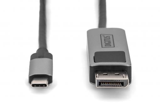 DIGITUS 8K@30Hz. USB type C na DP, Adaptérový kabel HBR3, hliníkové pouzdro, černá 2m