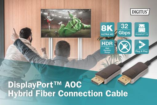 Digitus DisplayPort AOC hybrid-fiber connection cable M/M, 20m, UHD 8K@60Hz, CE, gold, bl