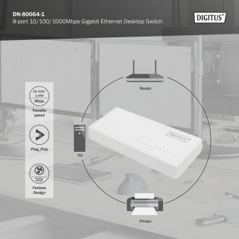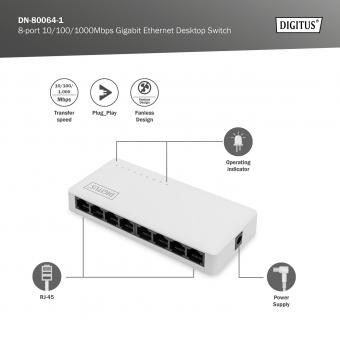 DIGITUS Gigabit Ethernet Switch 8-port, unmanaged, Desktop