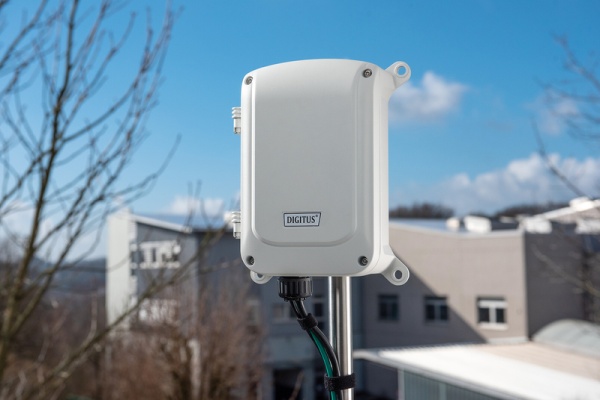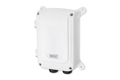 The DIGITUS® outdoor PoE switch is a highquality PoE switch in a weatherproof housing with the IP67 protection class. The housing is very sturdy and conforms to the IK10 vandalism protection class. The PoE switch offers a maximum range of up to 250 meters for PoE 802.3af devices and up to 200 meters for PoE 802.3at devices with a transmission rate of 10Mbps. When using the standard 100m range, the transmission rate is 100Mbps. This outdoor switch serves as an all-in-one device that is ready for use immediately after connecting it to the mains voltage. The device requires no settings to be made thanks to plug and play. If you plug your PoE devices into a free PoE port, the switch will automatically detect power supply and PoE mode. The all-in-one solution for outdoor PoE applications requires no separate power supply and no external overvoltage protection.