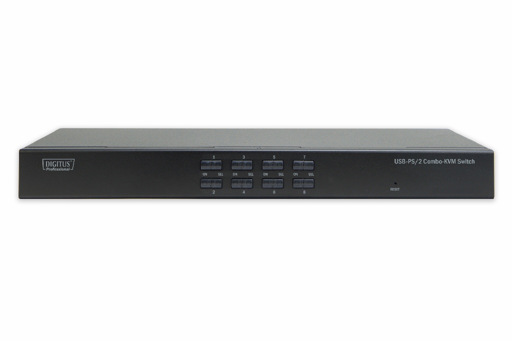 Digitus 8-port Combo-KVM switch, 1 user, 8 PCs, IP function module slot USB-PS/2 Combo-KVM Switch Combo-KVM Switch 1User, 8PCs (each PS/2 or USB), Controls several PCs with one PS/2 or USB keyboard, one PS/2 or USB mouse, and one monitor Extensi