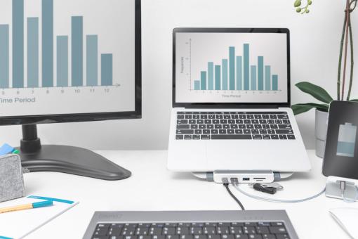 Stojan na notebook s integrovanou dokovací stanicí - spojuje ergonomický design a možnosti připojení v přenosném řešení