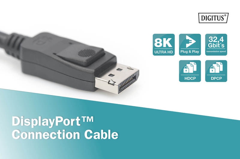 Ideal for CAD/CAM, GIS, 3D modeling, real time simulation, and more. DisplayPort connection cable, DP, M/M, 1.0m,w/interlock, Ultra HD 8K, Vers. 1.3/1.4, bl This high performance HD digital audio and video cable for example is used to connect a PC or