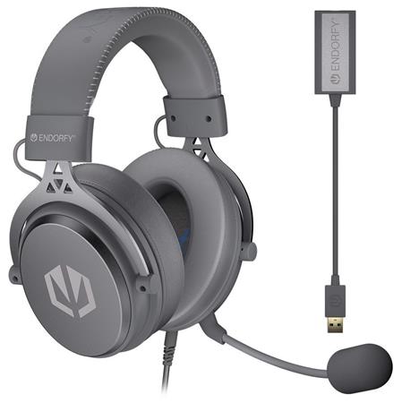 Endorfy VIRO Plus USB Alt Grey Headset,herní,náhlavní,drátový,odnímatelný mik.,53mm měniče,3,5mm jack + externí zvk.karta/šedý