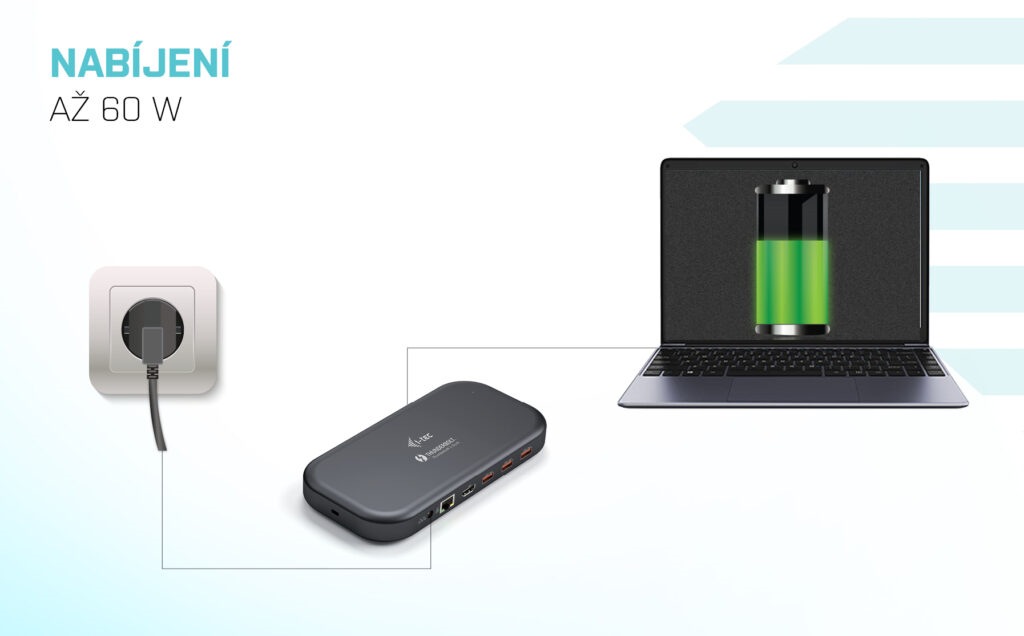 I-tec Thunderbolt 3 Dual 4K Docking Station, Power Delivery 60W Popis Druhá generace technologie Thunderbolt“ 3 přináší výjimečný výkon, ultra-rychlý přenos dat a podporu až 8K* rozlišení. Skvělá kvalita obrazu, rychlý internet a schopnost přenášet