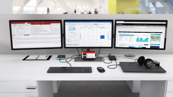 Pripojte ke svému notebooku, tabletu, PC nebo smartphonu s novým USB-C nebo Thunderbolt 3 rozhraním své oblíbené príslušenství. Použitím této dokovací stanice získáte prístup k napájení a k výstupu až pro tri externí monitory (platí pro systémy s Windows).