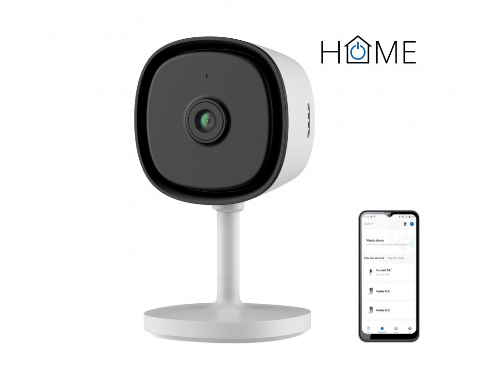 Vnitřní IP kamera s online sledováním pomocí mobilního telefonu, tabletu, apod. Ukládání záznamů a fotografií na microSD kartu nebo Cloud. Rozlišení FullHD 1080p (1920 x 1080) pro video ve vysoké kvalitě, denní i noční provoz, snímač 1/2,9" CMOS, komprese videa H.264, IR přisvětlení až 10 m, ohnisková vzdálenost 3,6 mm, Wi-Fi b/g/n, mikrofon a reproduktor, slot pro microSD kartu s velikostí až 128 GB. Stojánek kamery je možné ohýbat dle potřeby a pomocí oboustranné pásky, která je v balení, kameru připevnit kdekoliv.