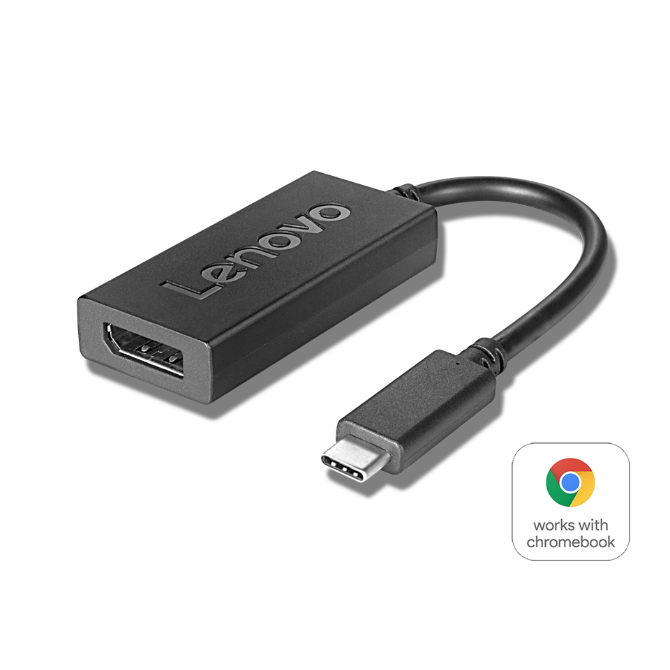 Adaptér Lenovo USB-C na DisplayPort připojuje systém s podporou USB-C k displejům s podporou DisplayPortu, jako jsou monitory a projektory. Podporuje vysoké rozlišení a špičkový zvuk. Délka je 200 mm (7,87''). Je kompatibilní s operačním systémem při certifikaci na WWCB. Tento produkt pracuje se zařízeními schopnými používat nejnovější verzi operačního systému Chrome a byl certifikován tak, aby splňoval standardy kompatibility společnosti Google.