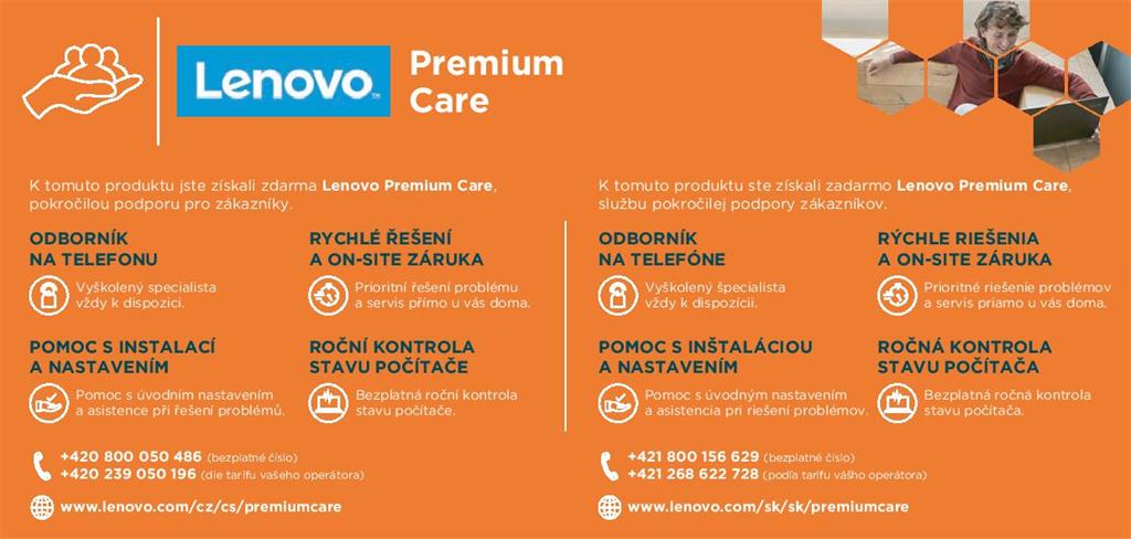 Lenovo rozšíření záruky Lenovo CONS/SMB NTB řady V PREMIUM CARE 2r on-site NBD (z 2r carry-in)