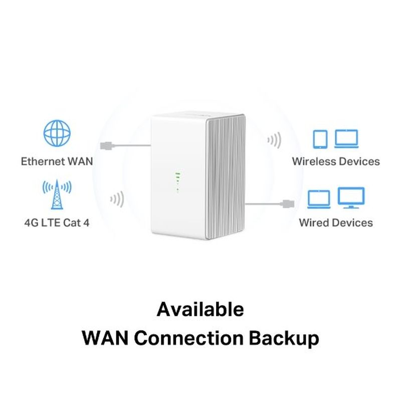 S plně funkčním portem WAN/LAN může MB110-4G fungovat jako router, který je kompatibilní s kabelovými, optickými a DSL modemy, nebo poskytovat internet pro kabelová zařízení. Spolehlivé připojení je až pro 32 zařízení současně.