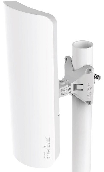 Uvnitř sektorové antény se nachází velmi výkonný RB911G-2HPnD s taktem 600MHz, 64MB operační pamětí, L4 licencí, 1x GLAN a podporou WiFi standardů 802.11b/g/n pro přenosovou rychlost až 300Mbps.