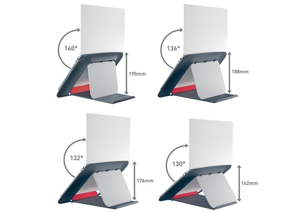 Rychlé a snadné individuální přizpůsobení tohoto stojanu pod notebook, možnost vybrat ze 4 různých výšek