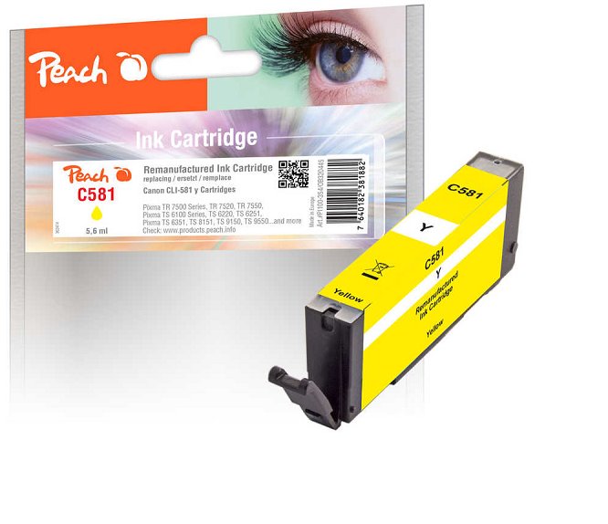 Technical Data Brand Peach SKU 320445 (PI100-354) EAN 7640182381882 Manufacturer ID Canon CLI-581Y, 2105C001 Obsah 5.6 ml Color žlutá Yield S Kompatibilní tiskárny (51) Canon Pixma TR 7500 Series Canon Pixma TR 7520 Canon Pixma TR 7550 Cano