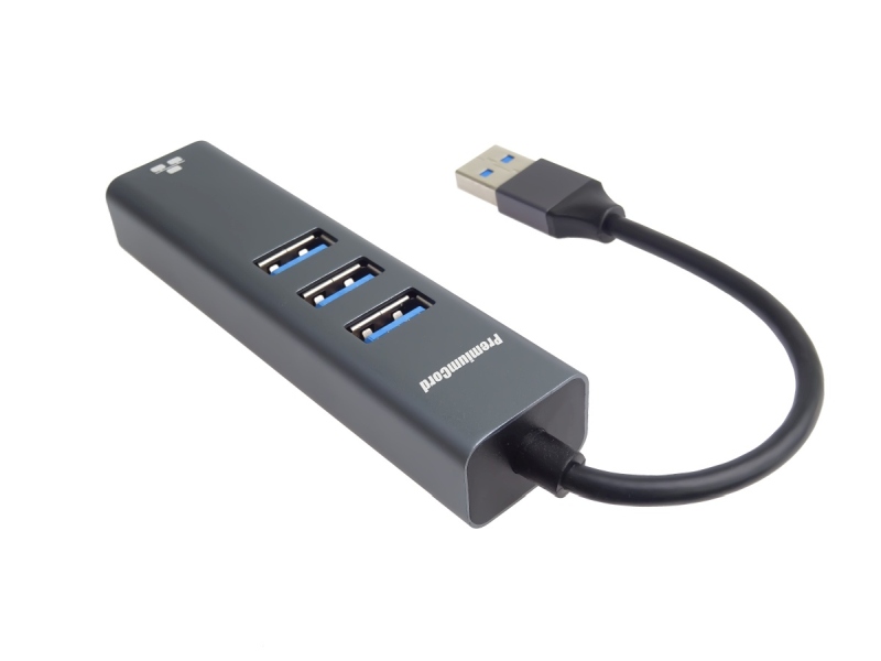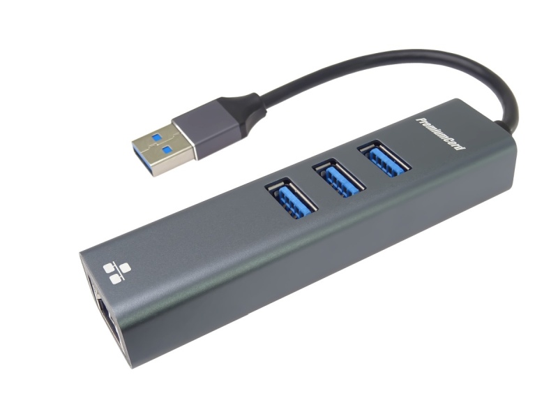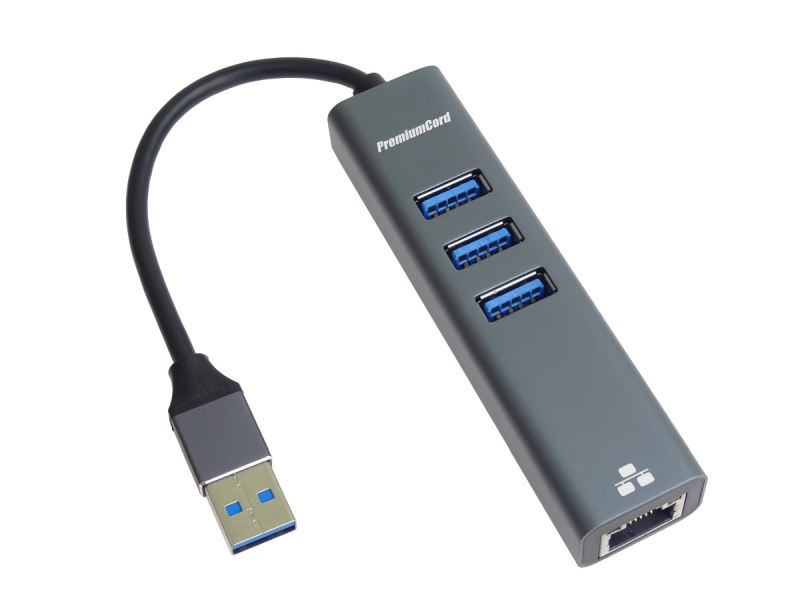 PremiumCord adaptér USB3.0 -> LAN RJ45 ETHERNET 10/100/1000 MBIT + 3x USB3.0 port