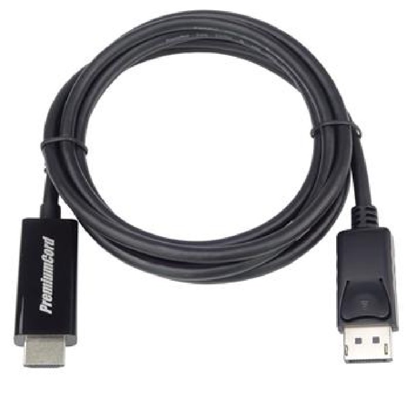 PremiumCord DisplayPort 1.2 na HDMI2.0 kabel pro rozlišení 4Kx2K@60Hz - Kabel umožňuje připojit HDMI monitor, TV a jiný zobrazovač s konektorem HDMI k počítači nebo notebooku s výstupem DP (Displayport) - Jednoduché řešení jak připojit druhou obrazov
