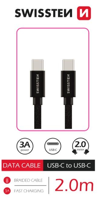 SWISSTEN DATOVÝ KABEL TEXTILE USB-C / USB-C 2,0 M ČERNÝ