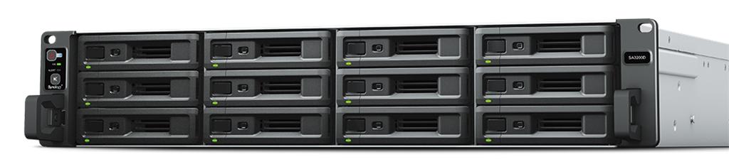 Zarízení SA3200D umožnuje zacít v malém s možností budoucího rozšírení. Ve výchozím nastavení podporuje 12 x 3,5"/2,5" prihrádek na disky v rozhraní SAS a jeho kapacitu lze s minimálním dopadem na výkon dále rozšírit pomocí dvou rozširovacích jednotek RXD1219sas4 až na 576 TB3. Díky konstrukci se sdíleným úložištem není replikace dat potrebná a v porovnání se dvema zarízeními používajícími funkci Synology High Availability se tak šetrí cenný prostor v datovém centru i šírka pásma síte.