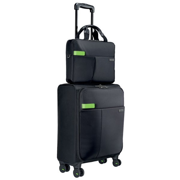 Kvalitní, lehká a kompaktní taška s dvěma hlavními a jednou menší přední kapsou. Výrazný a elegantní design doplňují kvalitní zipy a stylové matně kovové přezky. Černý povrch s kontrastním zeleným vnitřkem, pro snazší hledání předmětů. Taška nabízí místo pro všechny Vaše mobilní zařízení, 15,6" notebook a dokumenty do formátu A4. Lze pohodlně nosit díky polstrovaným rukojetím z pravé kůže nebo nastavitelnému ramennímu popruhu, případně upevnit na madlo pojízdného kufru.