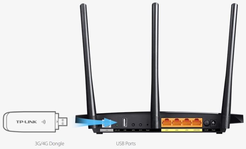 Modem a router Archer VR400 disponuje více vstupy a nabízí vám tak celou řadu možností, jak se připojit k internetu. Jako jedno záložní řešení můžete využít port EWAN, který routeru Archer VR400 umožní přijímat připojení z kabelových i optických modemů přes síťový kabel Ethernet. A navíc USB port podporuje připojení přes dongle umožňující příjem internetu přes mobilní sítě 3G/4G.