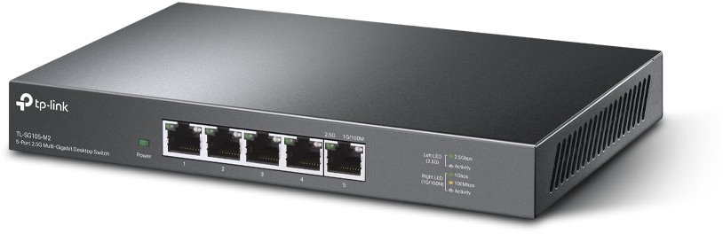 Firma TP-Link přichází s novou řadou Multi Gigabitových switchů, které dokážou navázat až 2.5Gbps link na každém portu. Tento základní model TL-SG105-M2 bez managementu v kovovém šasi má má celkově 5 metalických portů s rychlostí 100M/1G/2.5G, indikační LED na každém portu a jeden DC konektor pro napájení switche na zadní straně (12V / 1.5A).