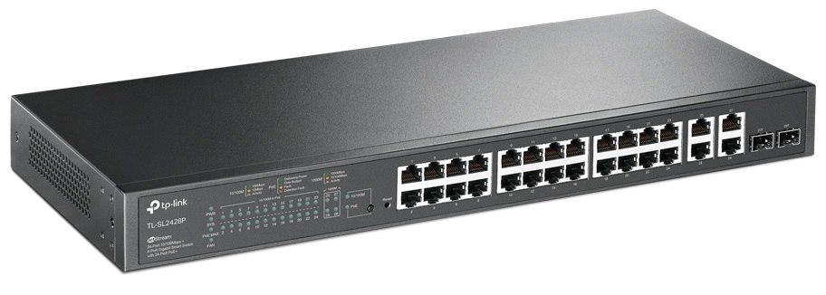 Switch TL-SL2428P nabízí (24) 10/100 Mbps portů, které podporují PoE v souladu se standardem 802.3at/af s celkovým napájením o výkonu 250W. Dostatečně výkonný a flexibilní pro uživatele, kteří chtějí použít přístupové body nebo bezpečnostní IP kamery. Sw