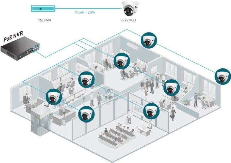 VIGI C430(4mm) je 3 MP vnitřní Turret kamera značky TP-Link s fixním objektivem 4 mm, bílým světlem a IR přísvitem do vzdálenosti 30 m a ethernetovým portem bez PoE. Kamera má max. rozlišení 2304 × 1296 px (při 30 fps), pozorovací úhel 89°, 2 nezávislé s