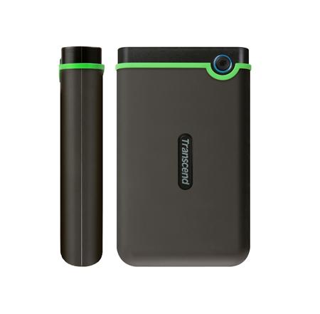 TRANSCEND 4TB StoreJet 25M3S SLIM, 2.5”, USB 3.0 (3.1 Gen 1) Externí Anti-Shock disk, tenký profil, šedo/zelený